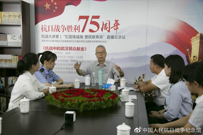 八路軍武漢辦事處舊址紀念館邀請武漢文化名人何祚歡做客直播間,講述了1938年周恩來、郭沫若等人號召的武漢市民支援抗戰的獻金運動故事,深切地回憶了在祖國生死存亡之際,中國人民誓死捍衛祖國的愛國情懷和“天下興亡、匹夫有責”的民族大義,并組織20余名黨員及全體干部職工舉行了莊嚴紀念儀式。